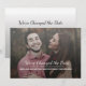 Eventos podem dar uma volta inesperada, mas você ainda pode mostrar aos seus convidados que está no caminho certo para fazer isso acontecer, só que um pouco mais tarde do que o planejado. Adicione sua fotografia de noivado favorita neste cartão de anúncio de "Mudança de Data". "Nós Mudamos a Data" está escrito em tipografia moderna e grande e abaixo estão os nomes. Você pode alterar tanto a mensagem quanto os nomes para se adequar ao tema que pretende transmitir aos seus convidados.