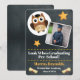 Olhe quem está se formando! Búho fofo e simples e modelo de foto de diploma em quadro negro para anúncio de cerimônia de formatura da pré-escola, pré-jardim de infância, jardim de infância ou escola primária. Personalize facilmente com as informações de conclusão do seu filho. Modelo de anúncio de formatura editável com turma de formatura e data.
