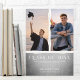 Anuncie seu graduado com um anúncio de formatura moderno e elegante, projetado para destacar duas fotos significativas em um layout limpo. Este design apresenta um efeito sutil de papel rasgado que separa um momento de celebração com lançamento de boina de uma foto relaxada do formando, criando uma história natural de antes e depois do último ano.