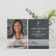 Seu filho ou filha está se formando na Escola Cristã? Christian College ou Seminário? Informe seus amigos e familiares que agora são um formando com este anúncio personalizado de imagem em preto e branco com cruz. Mostrado aqui para um segundo grau, você pode usar este convite para qualquer nível de educação de mais alto. Personalize-o com sua própria foto, nome e data para uma única memória de manutenção. Os detalhes da parte traseira podem ser personalizados com seu próprio texto.