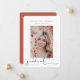 Script de assinatura, instantâneo de foto, anúncio de graduação. Recursos, foto de retrato vertical do solteiro na parte frontal e cor laranja sólida.