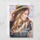 Este anúncio de formatura em chic apresenta um bonito impressão floral de aquarela sobre um fundo branco, e a moderna tipografia de script com letra de mão com uma foto de cheio na frente.