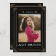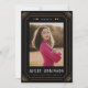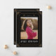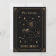 Este cartão de anúncio de graduação foi inspirado em cartões de tarô e apresenta sotaques dourados em um fundo preto, formando uma fotografia do formando. O nome do formando e a escola são exibidos na parte inferior do cartão e a data é em algarismos romanos ao longo da parte superior entre os elementos celestes, acrescentando-se ainda ao tema mágico. A parte de trás do cartão de anúncio de graduação apresenta um design de ouro místico inspirado em tarô que diz "O futuro parece brilhante", mas pode ser editado de acordo com as suas necessidades.