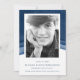 Esses anúncios de graduação de fotos apresentam uma foto enquadrada contra a índigo aquarela, com ano de aula, nome do formando e escola. A parte de trás é uma textura azul/aquarela índia de marinho profundo, com texto opcional do convite de festas!