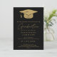 Esse anúncio de formatura elegante em preto e ouro pode ser personalizado com seus detalhes de graduação e uma foto no verso. Projetado por Thisnotme©