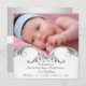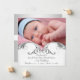 Bonito anúncio de nascimento de uma bebê branca prateada. Adicione os seus detalhes à frente e/ou atrás, simplesmente escolhendo o botão "Personalizar!" para começar a adicionar os detalhes do evento, estilo da fonte, tamanho e cor da fonte e texto. Observe que todos os designs de convite que você encontrará no Zazzle são gráficos impressos em estoque de papel plano sem joias reais, arcos, levantados, gravados em relevo ou peças ou peças adicionadas.