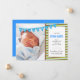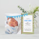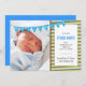 Este novo anúncio do bebê apresenta uma faixa diagonal de verde limão, chocolate marrom e azul clara e uma faixa sinalizada para a palavra: acolhendo. Um quadro fotográfico e texto personalizado permitem que você carregue uma foto do seu novo bebê e adicione todos os detalhes de nascimento.