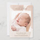 Elegante design de anúncio de nascimento no estilo da boêmia com cor aquática moderna, com beige abstrato neutro e tom marrom detalhando. Roteiro introduzindo linhas, e fontes modernas de tipografia sans limpas. Espaço na frente de uma grande foto de solteiro junto com estatísticas de natalidade incluindo data e hora de nascimento, assim como peso, comprimento e linha curta de um bebê com os nomes dos pais. O verso apresenta dois espaços adicionais de fotos.
