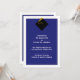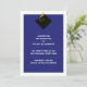 Anúncios clássicos de graduação para o formando com boné preto elegante e tassel de ouro sobre fundo azul da escola.