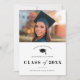 Um simples anúncio de graduação de fotos com grande ano de graduação, tipo clássico e nome do estudante.