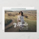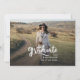 Um anúncio de graduação de 2025, moderno e elegante, com duas fotos da faculdade ou do formando segundo grau. Essa tendência e o script branco casual aparecem em uma sobreposição. Adicione as fotos do formando na frente e no verso e edite o texto na parte traseira para fazer deste cartão um simples anúncio de graduação ou um convite de festas de formando.