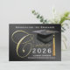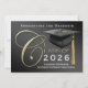 Este anúncio de formatura Dourado e negro ou convite festa de formatura é perfeito para qualquer faculdade, segundo grau ou qualquer formando de nível. O Classic design apresenta fundo preto elegante com letras douradas, boné de formando de placa-de-mala e punho. Muito fácil de personalizar com suas informações. Nenhuma foto necessária, basta adicionar suas informações e enviar emails para amigos e familiares com uma das fotos do seu próprio mais velho. Convidam-se para a graduação em estilo clássico, formal e tradicional, homens ou mulheres de qualquer idade ou grau.