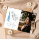 Cartão de anúncio de formatura moderna e caprichosa, com ilustração de uma tassel azul-claro, com um texto de tipografia escrito à mão que diz "o futuro é brilhante".