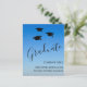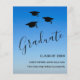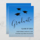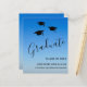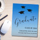 Anúncio de Graduação Azul de Orçamento. Envie a sua família e amigos este simples e moderno cartão de anúncio de graduação. Este design apresenta um céu azul com bonés formandos no ar! Personalize com seu próprio nome, escola e ano.