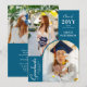 O Anúncio de graduação azul no oceano de fotos moderno apresenta três das suas fotos favoritas do seu formando, com o ano de aula, o nome do formando e a escola, universidade ou universidade, grau, qualificação ou planos futuros com a cobertura de roteiro de caligrafia branca, moderna, "Formando". No reverso, adicione sua mensagem personalizada. Simples, na moda e elegante. Criado por ©2025 Evco Studio www.zazzle.com/store/evcostudio
