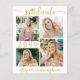 Um anúncio de formatura moderno e econômico, impresso em papel leve de 4,5x5,6" em vez de papel cartão, apresentando tipografia em escrita caligráfica em dourado metálico falso e um chapéu de formatura, personalizado com 5 fotos (um colagem de 4 fotos na frente e 1 no verso) na cor de fundo de sua escolha (mostrado em branco), podendo ser alterado para a cor da escola ou cor favorita. O ano da turma é editável para outros anos. O verso apresenta uma foto em bleed total e um campo de texto opcional para seu texto personalizado com detalhes sobre seu formando. Ideal para orçamentos conservadores e/ou entrega manual. Os envelopes são vendidos separadamente na página de pedidos. ASSISTÊNCIA: Para obter ajuda com modificação de design/personzalização, alteração de cor, transferência do design para outro produto ou se você gostaria de itens coordenados, entre em contato com o designer ANTES DE COMPRAR pelo Zazzle Chat ou make