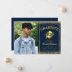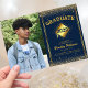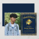 Celebre a turma de 2026 com estilo e elegância incomparáveis com nosso cartão de anúncio de formatura azul-marinho. Esta obra-prima moderna é adornada com uma sobreposição de glitter dourado brilhante, capturando uma imagem memorável do novo graduado. O cartão destaca elegantemente o nome do graduado e suas aspirações futuras ao lado de um boné de formatura com o ano da turma, evocando uma sensação de conquista e orgulho. É mais do que um cartão - é um item de recordação que captura um marco fundamental na vida de um graduado.