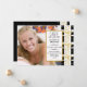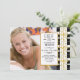 Um anúncio de formatura sofisticado para um graduado com formação musical ou para um amante da música. As teclas do piano são configuradas como uma borda do lado direito com notas musicais douradas. Sua personalização também é emoldurada em ouro.