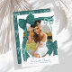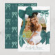 Este anúncio de formatura coquete apresenta sua foto cercada por laços verdes desenhados à mão. O verso apresenta um fundo verde escuro com um padrão de laços. Personalize-o de acordo com as suas necessidades. Você pode encontrar produtos correspondentes na minha loja.