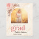 Impressão de mármore dourado como fundo. Decorado com grama das pampas e flores rosa claro. Personalize e adicione sua própria foto do graduado. Adicione o ano e o nome da escola. Com a palavra: Graduado escrita com letras grandes.