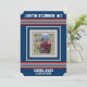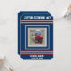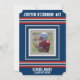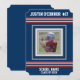 Listras esportivas estilo camisa vermelha, branca e azul em um fundo azul-marinho escuro. Quadro de foto para adicionar a foto da equipe do seu atleta e personalizar com seu nome, número da camisa, nome da escola ou equipe e "turma de" para o ano de formatura.