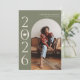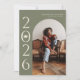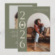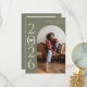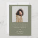 Cartão de anúncio de na moda e graduação moderna para enviar para a família e os amigos. Há um quadro verde sábio em volta da sua foto. Você pode adicionar uma segunda imagem no verso e a mensagem é editável. O ano é escrito de lado com uma ilustração de um dentro boné de formatura do número zero.