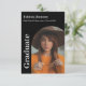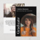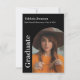 Cartão de convite para formatura moderna Na frente, o nome do formando, a escola e o ano de aula. Uma foto na frente e outra no verso.