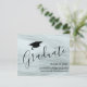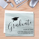 Envie a sua família e amigos este cartão de anúncio de formatura moderno e elegante. Este design apresenta um impressão de vidro colorido cinza no fundo com um boné de formatura. Personalize-o com o nome, a escola e o ano.