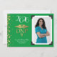 Celebre a nova graduada da escola de doutorado em prática de enfermagem com este anúncio de graduação do caduceu DNP dourado em verde! Elegante com uma borda de foto vintage e detalhes de confetes dourados! Perfeito para quem se formou como DNP com seu diploma como enfermeiro especialista!