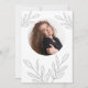 Anúncio de Graduação de Foto Simples Folha de Formando. Destinado a ser usado como fundo para as sobreposições de velum disponíveis nesta coleção. Um simples design contemporâneo para anunciar sua formatura. Basta substituir o exemplo de foto pelo seu, que está dentro de uma máscara circular e personalizar facilmente sua mensagem no verso. Com folhas simplistas da arte de linhagem.