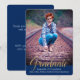 Efeito de sobreposição de tom azul escuro e dourado do marinho e escrevendo de script elegante formal "Formando", foto do cobrir do cheio na frente e detalhes pertinentes da festa de formatura na parte traseira. Aponta automaticamente as áreas perfeitas da foto.