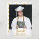 Comemore a conclusão de uma vida inteira com esses anúncios mostrando sua foto e seu texto dourado na frente e bonés de formatura dourados no verso. Muito espaço para adicionar todos os detalhes em campos de texto personalizáveis.