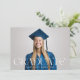 Anúncio de graduação moderno com a foto horizontal de sangria do cheio na frente com o "Formando" exibido em uma camada de texto elegante e branca. Personalize a frente e a volta para torná-la sua. 1 imagem fotográfica perfeita para segundo grau ou formandos.