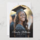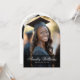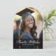 Cartão de anúncio em forma de arco com foto e o nome do formando em uma fonte elegante de script caliigraphy com o ano abaixo. Adicione uma foto adicional e uma mensagem personalizada no verso.