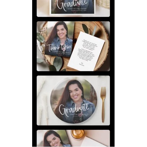 Um anúncio de graduação de fotos em roteiro. Todo o texto na parte frontal e traseira da placa pode ser personalizado. Troque a foto por uma foto do formando para criar o anúncio perfeito da graduação.
