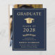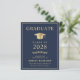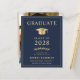 Anúncio de graduação clássico azul-escuro elegante e acessível com boné de ouro e tipografia de ouro leve moderna para o nome do formando, ano de aula, escola, faculdade ou universidade, grau e grande ou honras. Adicione a foto do formando atrás.