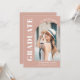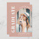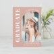Este moderno Cartão de Anúncio de Graduação apresenta tipografia de na moda em um fundo rosa-claro. Substitua a foto por sua e adicione seus detalhes.