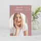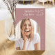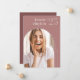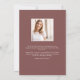 O anúncio de graduação de fotos simples e moderno apresenta uma foto vertical ou orientada a retratos em um layout único e arquivado, em um tom de fundo cor-de-rosa poeirento. O nome do formando e o ano de graduação aparecem no topo, com o nome da escola no canto inferior direito. Adicione uma mensagem pessoal ao verso, juntamente com uma foto adicional.