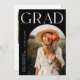Este anúncio de graduação apresenta uma combinação moderna de cores preto e branco com uma foto de arco e uma mensagem simples no verso. Este anúncio é perfeito para segundo grau ou formandos.