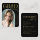 O anúncio simples de graduação em mini tamanho apresenta a tipografia moderna e a foto em forma de arco em preto e ouro, elegante e divertido, Personalize-o com sua própria foto e informações de festas de formando.