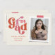 Celebre o formando em estilo com este lançamento ousado, divertido e retrógrado de graduação de 2 fotos. Esta placa apresenta a tipografia de vintage retrorativa e uma paleta cor rosa e laranja. Um tratamento fotográfico ao estilo polaroide aumenta a nostalgia e o boho dessa design. O verso apresenta uma segunda foto e muito espaço para seu texto adicional. Compartilhe suas conquistas e planos de formando com amigos e entes queridos. Um design divertido, ousado e colorido para celebrar seu formando.