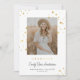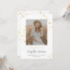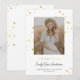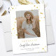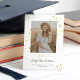 Este anúncio de graduação chic, mas caprichosa, apresenta um fundo branco clássico (personalizável), uma aspersão de estrelas de ouro falsa, "FORMANDO" falsa de ouro e uma foto vertical. Você pode personalizar este design ainda mais adicionando outra foto ou texto adicional no verso.