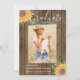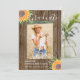 Anuncie à sua família e amigos que sua filha se formou com este cartão de anúncio de formatura de girassol rústico moderno. É decorado com girassol e folhagem de cor d'água sobre fundo de madeira. Personalize-o substituindo a foto pela sua. Personalize com seu nome, escola e ano. Porque nós criamos nosso próprio trabalho de arte você não encontrará esses exatamente girassóis e folhas de outros designers. Original Watercolor © Michele Davies.
