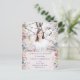Este cartão-postal de anúncio de graduação, encantador, apresenta belas bordas florais de aquarela em um fundo rosa pincelado, com a foto pessoal do formando.