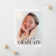 Cartão de anúncio de graduação moderno de 2025 com uma foto do graduado na frente, a simpática frase "chapéus fora para o graduado", o nome e o ano de conclusão. No verso há outra imagem, detalhes da formatura e planos para o futuro.