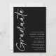 Este é um cartão de anúncio de graduação preto e branco minimalista e moderno. É um simples e na moda, design de guião manuscrito em preto-e-branco, com uma fotografia no verso. Entre em contato com o designer para obter informações sobre este design.