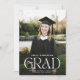 Este anúncio de formatura em chic apresenta uma foto vertical do quadro do cheio e uma tipografia moderna, mas elegante. Este é um design elegante e chique. Você pode personalizar este design ainda mais adicionando outra foto ou texto adicional ao backer. Todo tipo, incluindo "FORMANDO", é completamente personalizável.