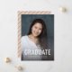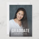 Anuncie sua formatura com este simples anúncio de formatura em negrito, com a palavra "Formando" em uma letra de sans em negrito, em branco. A placa tem um padrão de faixas diagonais contra um fundo sombreado de areia. Personalize-o substituindo o texto do marcador de posição e substitua a foto do marcador de amostra/marcador de posição por sua própria foto. Para obter mais opções, como alterar a fonte, o tamanho/cor do texto, o espaçamento entre letras ou para contrair ou expandir o texto curvo, clique no botão "Personalizar". *Observe que a Marca d'água Zazzle que aparece na visualização de zoom NÃO aparecerá no produto impresso final © Rosewood e Citrus