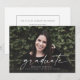 Este anúncio de graduação de fotos sombrias do cheio apresenta a palavra "formando" escrita em branco na frente. Tem espaço para o nome do formando, ano de aula e escola. A parte traseira do cartão pode ser usada para uma mensagem pessoal ou para os detalhes do convite de festa de formatura.