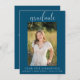 Anuncie sua formatura com este anúncio elegante de graduação azul do marinho de roteiro. Adicione uma foto e personalize o texto na frente e atrás para criar seu próprio anúncio de graduação exclusivo. Este convite está disponível em diversas cores. Visite minha coleção de graduações para ver todas as opções.